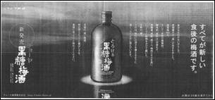 この広告を白黒にすると、下の写真のような感じになります。こうやって比較してみると、黒いボトルを印象づけるためにも、カラー広告にしなければならないなあと感じます。